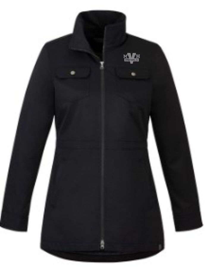 Ladies Hardy Eco Jacket, The stylish, sustainable ladies Hardy Eco Jacket is the perfect transitional jacket. Its breathable fabric and lining are made from recycled polyester, and its zipper and pinch label are also made from recycled content, making it a comfy, eco-friendly piece you can feel good about wearing. It has a water-resistant coating that provides lightweight weather protection, plus upper patch pockets and lower welt pockets to store valuables. The mid length offers extra protection, and the shaped seams and tapered waist deliver a flattering fit. Features like one-button cuffs, a dropped back hem and a drawstring at the waist with interior cordlocks help keep cold air out. Plus, the back vent makes it extra breathable for maximum comfort. With style that looks great anywhere, this versatile jacket will become your new favorite for year-round use. And through a partnership with 1% For The Planet, one percent of sales of all Eco products are donated to environmental nonprofits.